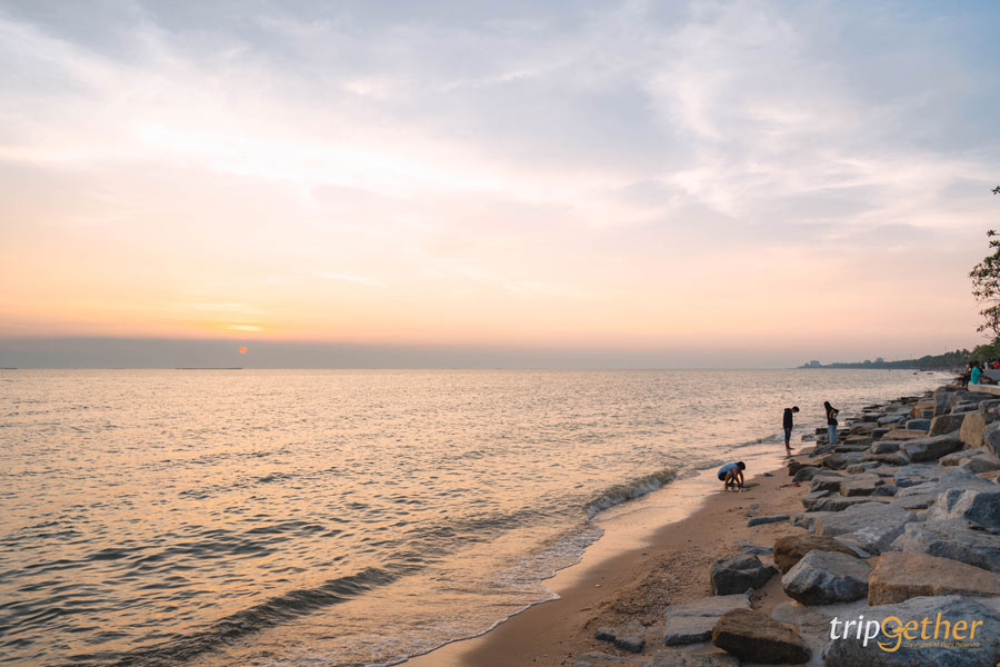 อิ่มท้องแล้วไปกันต่อ~ หาดบางแสน หาดสุดฮิตยืนหนึ่งในทุกซีซั่น จัด One day trip บางแสนหน้าฝน ถ้าไม่อยากลงเล่นน้ำก็สามรถนั่งชิลล์ปิกนิกใต้ร่มไม้แทนได้นะ ปล่อยใจจอยๆ ฟังเสียงคลื่นที่กระทบฝั่งทำให้รู้สึกสงบและผ่อนคลายและสุดๆ