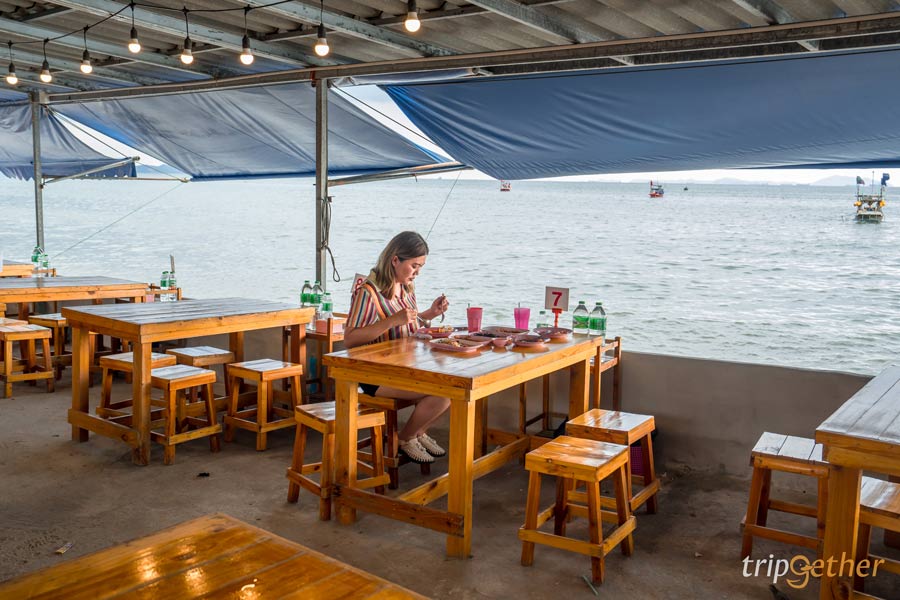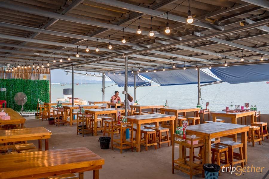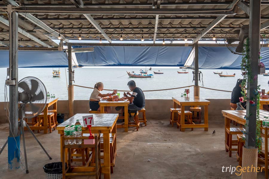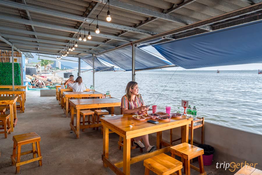 มาถึงก็จะเจอกับร้านที่ตั้งอยู่ติดทะเลเลย วิวคือสวยฉ่ำ!