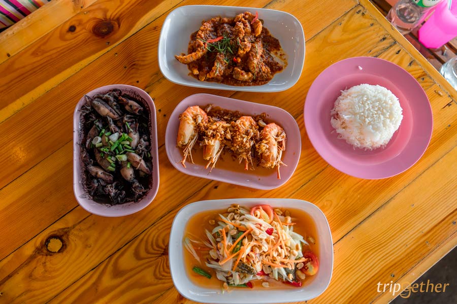 เมนูของที่ร้านก็จะมีทั้งตามสั่งและอาหารทะเลพื้นบ้านที่บอกเลยว่าเค้าใช้วัตถุดิบสดใหม่ ส่งตรงจากทะเลเลย รสชาติอร่อยสุดๆ แถมราคาก็ไม่แพงด้วย เมนูที่เราสั่งมากินกันวันนี้คือ ฉู่ฉี่กั้ง ราคา 150 บาท ตำปูม้า ราคา 80 บาท กุ้งทอดกระเทียม ราคา 150 บาท และไม่พลาดเมนูนี้แน่นอน หมึกไข่ผัดน้ำดำ ราคา 150 บาท กินกับข้าวสวยร้อนๆ คือสุดจะฟิน
