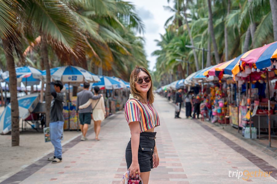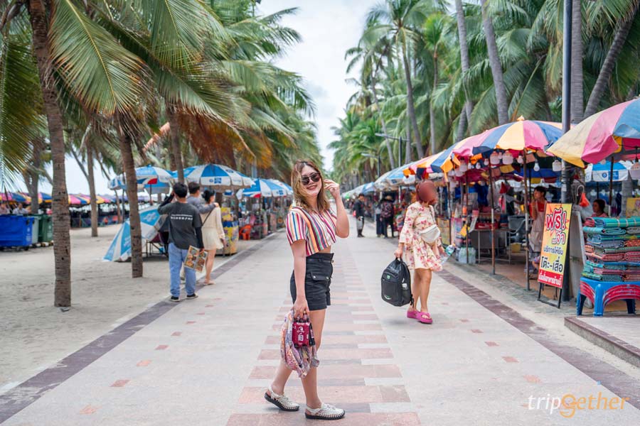 แวะถ่ายรูปเช็คอินกับเอกลักษณ์ของบางแสนอย่างต้นมะพร้าวที่เรียงรายตามแนวหาด