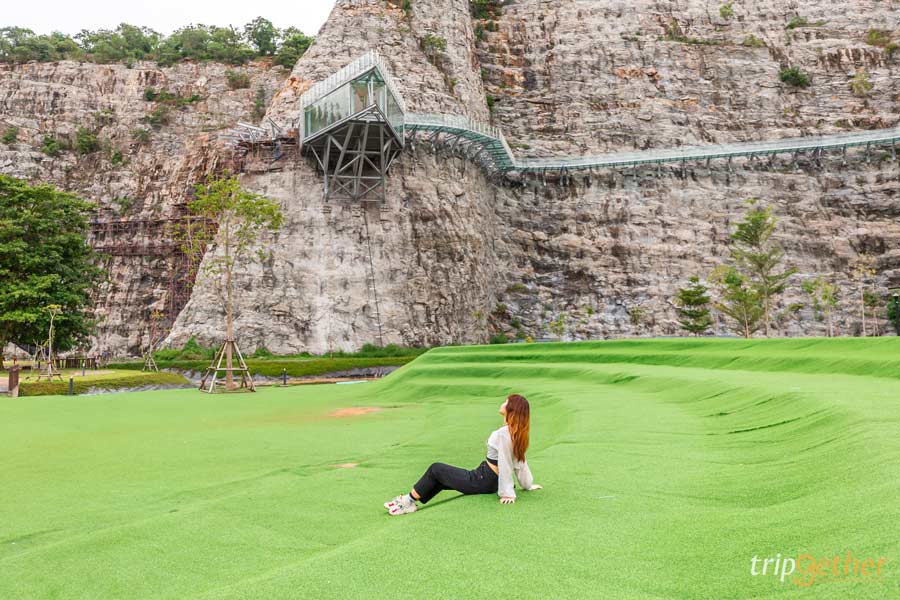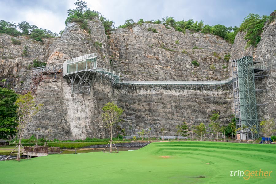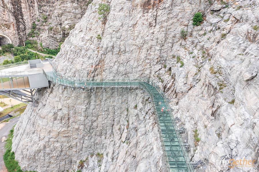 นอกจากนี้ที่นี่ยังมีอีกจุดน่าสนใจคือ สกายวอล์ค ที่ยึดติดอยู่กับหน้าผาและไร้เสาค้ำ ความสูงจากพื้นดิน เทียบเท่าตึก 12 ชั้นเลยล่ะ โดยมีระยะทางยาว 500 เมตร มองแล้วทั้งสวยและน่าหวาดเสียวสุดๆ ซึ่งตอนนี้อยู่ในช่วง กำลังทดสอบระบบรองรับนักท่องเที่ยว โดยได้เปิดทดลองให้ขึ้นชมด้านบนฟรีไปเมื่อ วันเสาร์ที่ 17 และวันอาทิตย์ที่ 18 พฤษภาคม 2568 ที่ผ่านมานี้เอง บอกเลยว่าอดใจรออีกไม่นานที่นี่จะเป็นแลนด์มาร์กที่ใครมาเที่ยวสุพรรณบุรีก็ต้องมาเช็คอิน