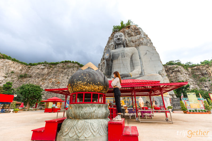 นอกจากนี้ด้านหลังพระพุทธรูปยังมีอุโมงค์ถ้ำขนาดใหญ่ มีสิ่งศักดิ์สิทธิ์ให้ได้กราบสักการะมากมาย ไม่ว่าจะเป็นพระแม่ธรณี พระแม่คงคา พระแก้วมรกต ให้เราได้สักการะไหว้ขอพรเสริมสิริมงด้วยนะ