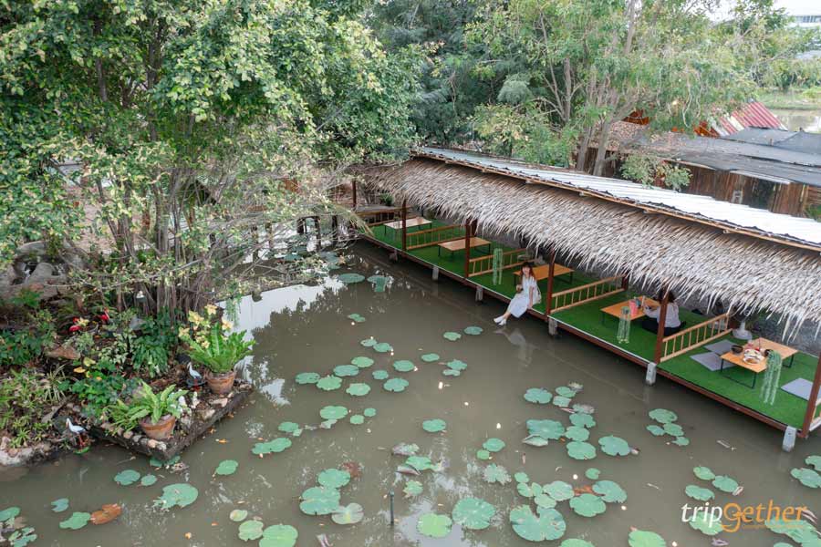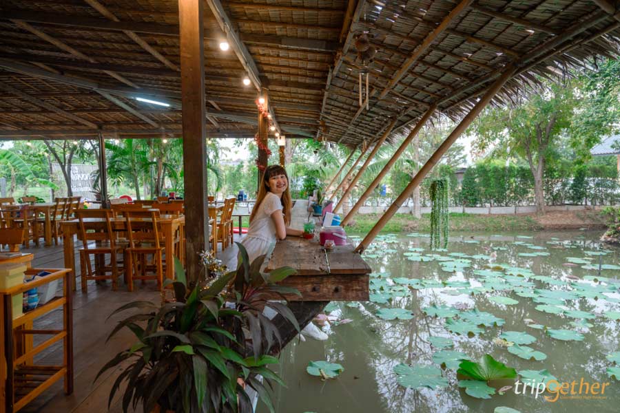 ตัวร้านอยู่ท่ามกลางบรรยากาศ รายล้อมไปด้วยสระบัว อากาศเย็นสบายมาก
