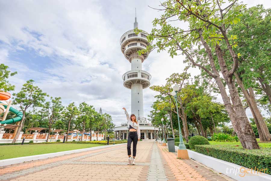 ถัดมาอีกจุดที่เราบอกเลยว่าสวยไม่แพ้กัน ใครไม่มาเช็คอินถือว่าพลาดมาก นั่นก็คือ หอชมวิว นอกจากจะถ่ายภาพสวยแล้วยังได้ชมวิวมุมสูงของจังหวัดสุพรรณบุรีได้แบบ 360 องศาเลยล่ะ