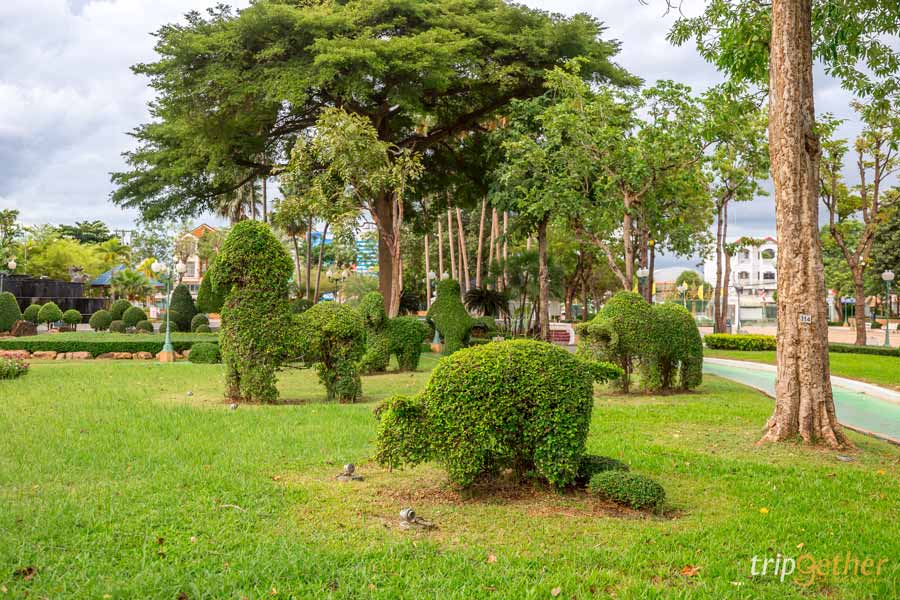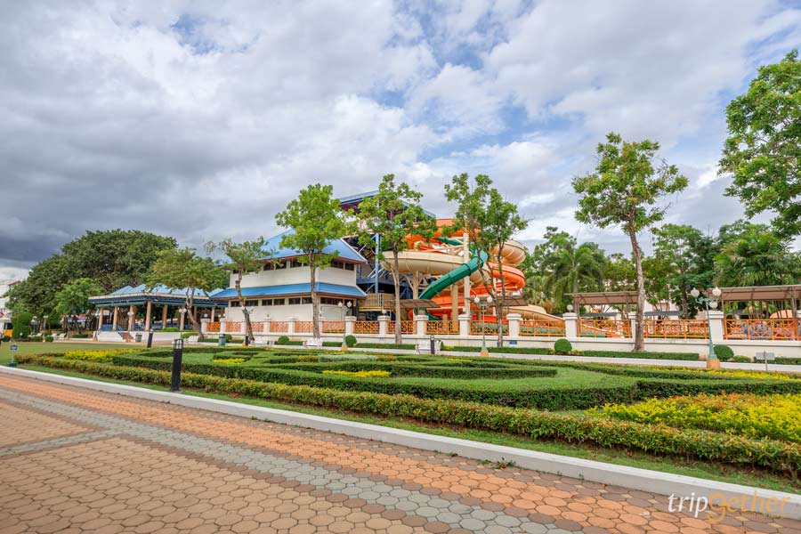 ทั่วทั้งบริเวณจัดตกแต่งด้วยดอกไม้ประดับมากมายหลายชนิด ทั้งยังได้รวมเอาสวนปาล์ม สวนน้ำพุ ธารน้ำตก สนามเด็กเล่นเข้าไว้ด้วยกันอีกด้วย