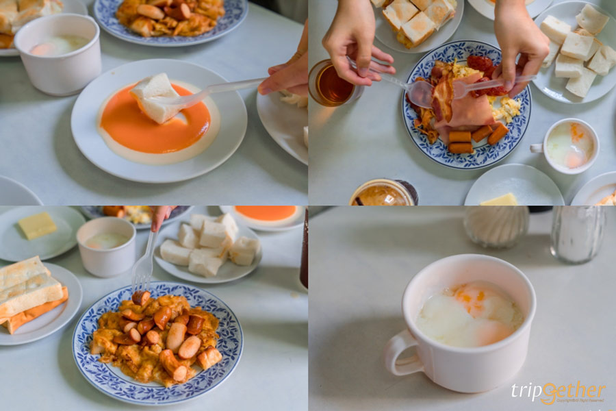 และที่ขาดไม่ได้คือไข่ลวกและกาแฟ