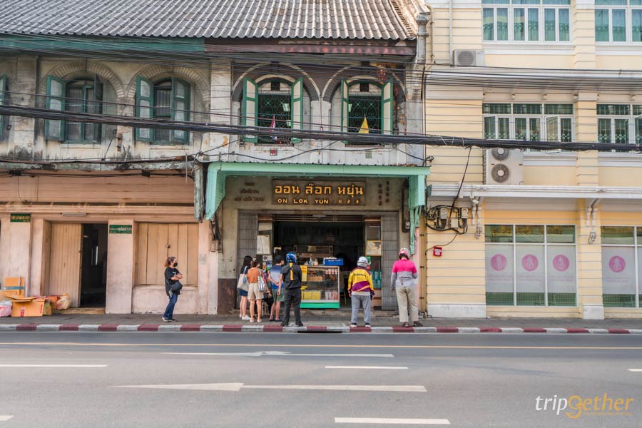 ไปกันต่อ~ กับจุดหมายที่แท้จริงของเรานั่นก็คือ ออน ล๊อก หยุ่น ร้านอาหารเช้าเก่าแก่ที่เปิดมายาวนานกว่า 90 ปี ร้านชื่อดังที่อยู่แถวดิโอล์ดสยาม พิกัดร้านอยู่ห่างจาก MRT ประมาณ 70 เมตรเท่านั้น! เติมพลังก่อนเที่ยว