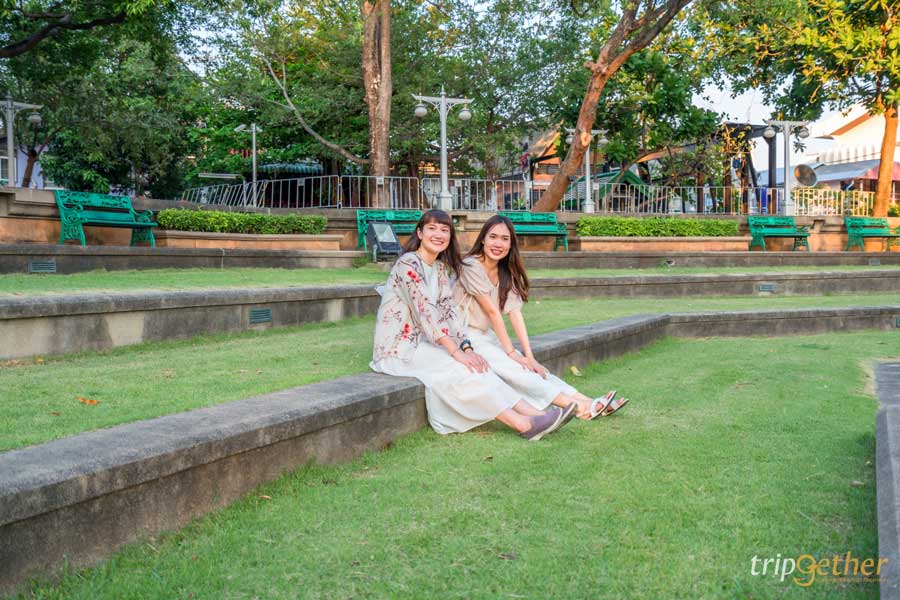 เราปักหมุดแวะเข้ามานั่งพักผ่อนรอชมพระอาทิตย์ตกใน สวนสันติชัยปราการ สวนสาธารณะบรรยากาศดีที่อยู่เคียงคู่กับป้อมพระสุเมรุ ที่นี่เรียกได้ว่าเป็นสวนเพื่อการพักผ่อนอย่างแท้จริง คนไม่เยอะ บรรยากาศเงียบสงบและที่สำคัญติดริมแม่น้ำเจ้าพระยาอีกด้วยะ