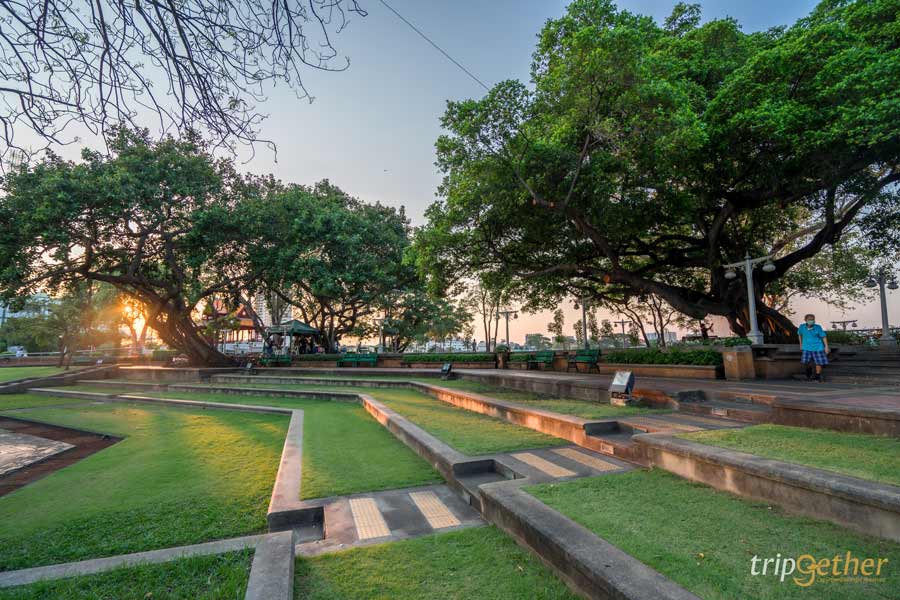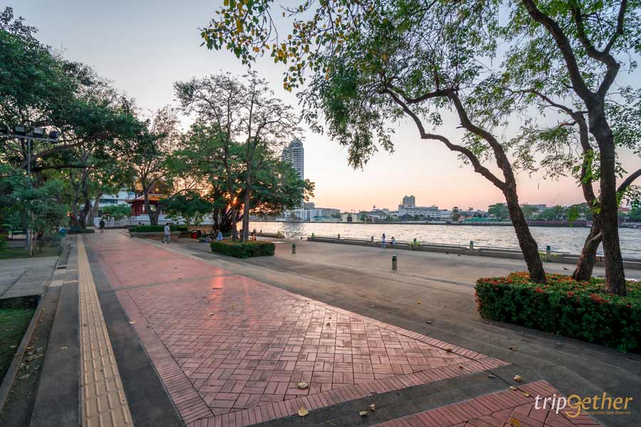 จากสวนสาธารณะเราสามารถมองเห็นวิวของสะพานพระราม 8 เหนือแม่น้ำเจ้าพระยา และวิวพระอาทิตย์ตกที่สวยงามของแสงสีส้มอ่อนๆ ที่กำลังลับขอบฟ้าอาบทั่วผืนน้ำ วิวหลักล้านสุดๆ ถือเป็นโลเคชั่นปิดทริปที่ดีต่อใจสุดๆ เป็นอีกหนึ่ง One day trip เที่ยวกรุงเทพ ที่ใจฟูมาก~