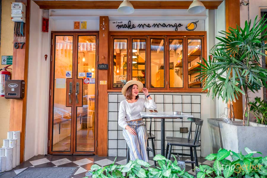 เดินกันมาสักพักใหญ่ ก็เริ่มรู้สึกอยากได้อะไรสดชื่นๆ มาเติมพลังให้กับช่วงยามบ่ายนี้ เราเลยพากันปักหมุดมาเช็คอินที่คาเฟ่มะม่วงสุดชิคกับร้าน Make me mango ที่บอกเลยว่าสายหวานห้ามพลาด เมนูมะม่วงกินแล้วสดชื่นทุกคำ!