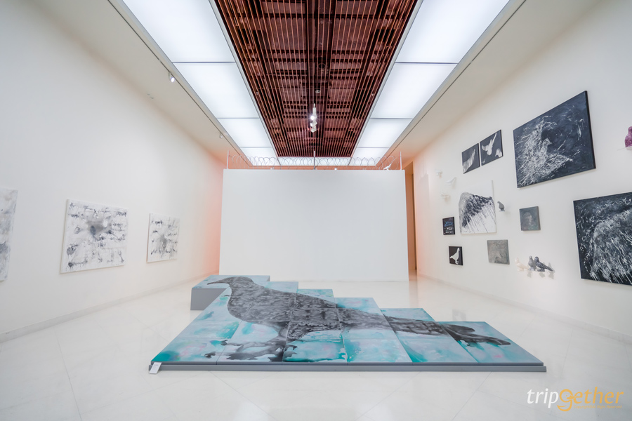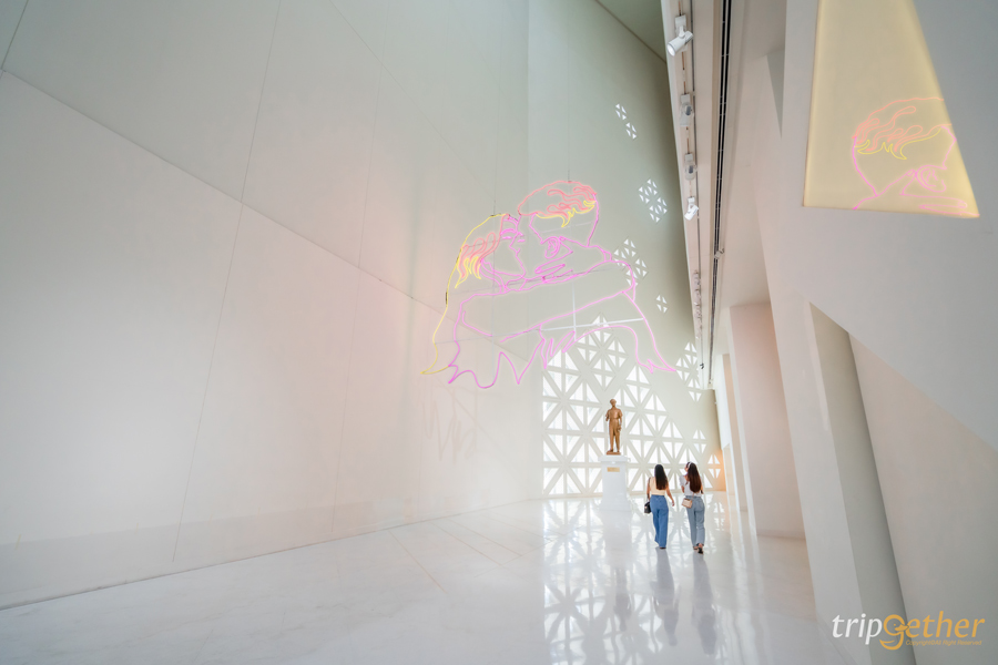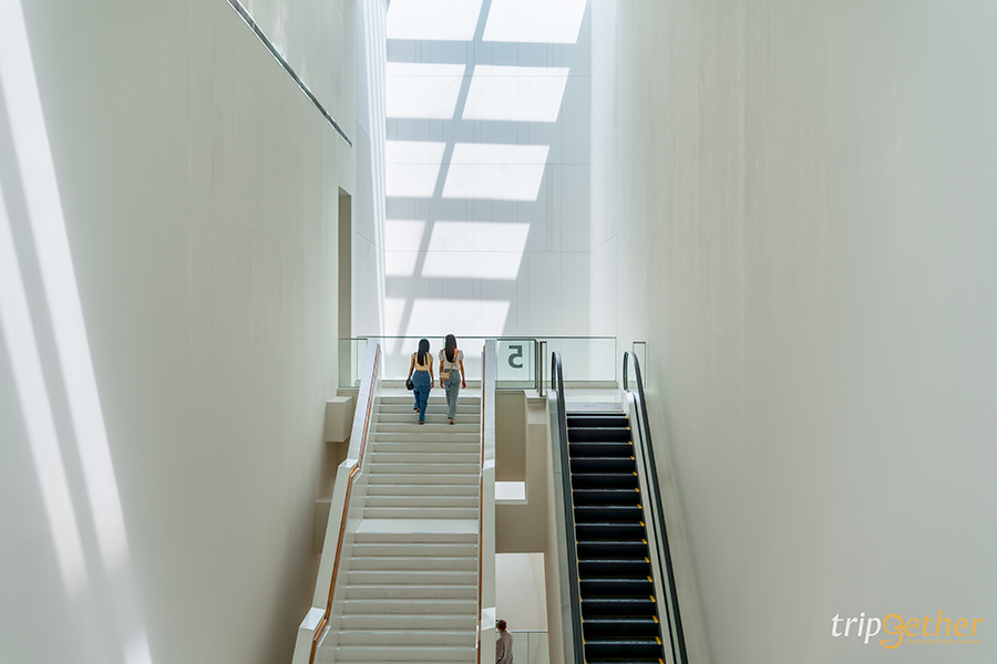 พิพิธภัณฑ์จะมีด้วยกันทั้งหมด 5 ชั้น แต่ละชั้นจะจัดแสดงผลงานที่แตกต่างกันออกไป โดยผู้ที่เข้าชมจะได้รับแผ่นพับแสดงแผนผังและรายละเอียดงานในแต่ละชั้นของพิพิธภัณฑ์ เรามาเริ่มกันที่ชั้น G จะเป็นนิทรรศการหมุนเวียน ซึ่งตอนที่เราไปเป็นนิทรรศการที่มีชื่อว่า “Human(e)” งานศิลปะที่ถ่ายทอดความเป็นมนุษย์จากมุมมองของศิลปินทั้ง 4 คน