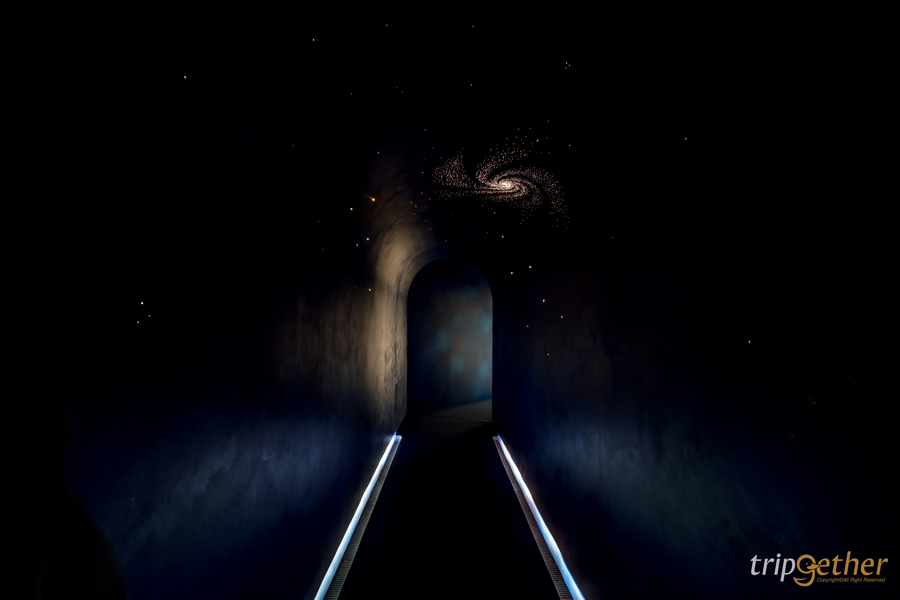 มาต่อกันที่ชั้น 3 กับโซนที่มีชื่อว่า สะพานข้ามจักรวาล จะเป็นอุโมงค์มืดสนิท พอเดินเข้าไปก็จะเห็นไฟดวงเล็กๆ เรียงตัวกันเป็นกาแล็คซี่ โดยตรงนี้สามารถถ่ายรูปแบบใช้แฟลชได้ โพสท่าสวยๆ รอตั้งแต่ทางเข้าได้เลย