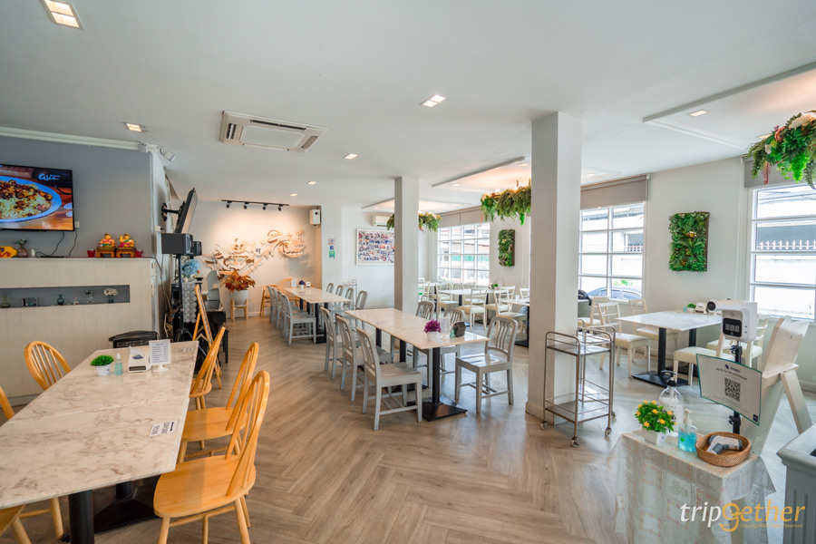 เนื่องจากช่วงนี้ภายในตัวร้านยังคงปิดไม่ให้เข้า แต่ก็ไม่เป็นปัญหา เพราะเราสามารถนั่งกินได้ที่โต๊ะภายนอกภายในอาคารข้างๆ ร้านเลย