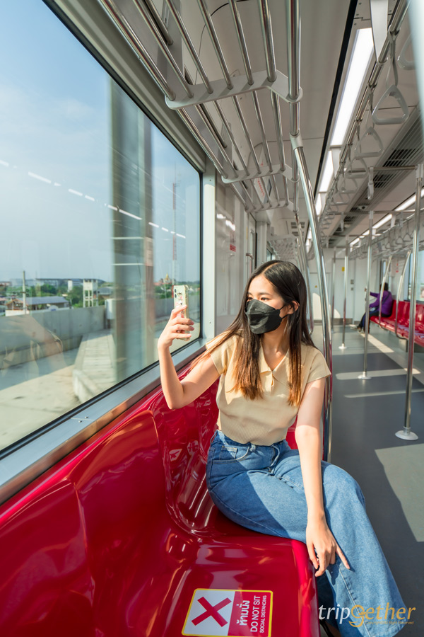 ภายในรถไฟฟ้าสายสีแดงจะเป็นกระจกกว้าง มองเห็นวิวได้แบบเต็มๆ ให้ฟีลเหมือนอยู่ญี่ปุ่นเลย