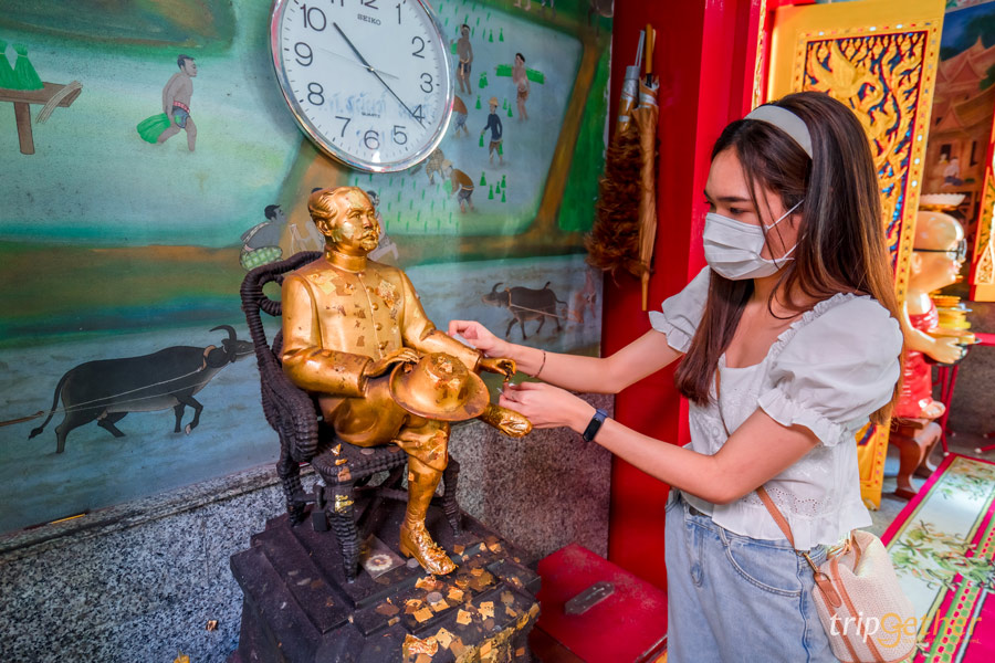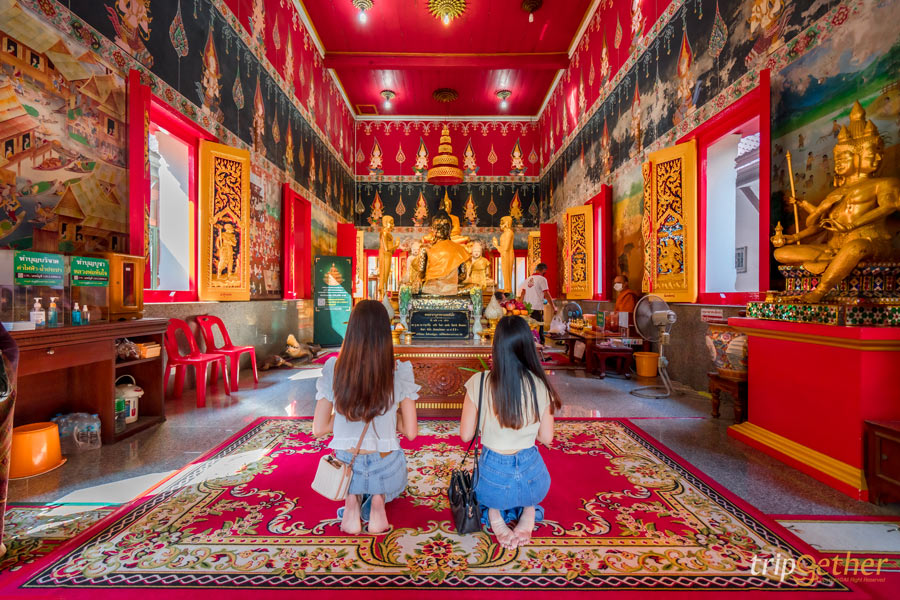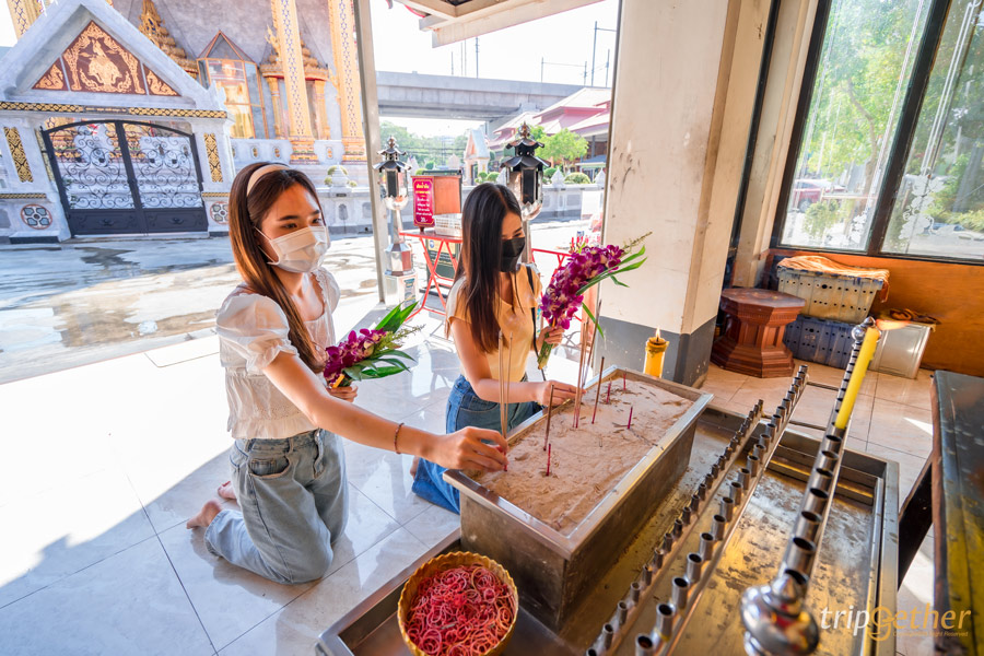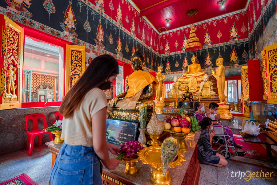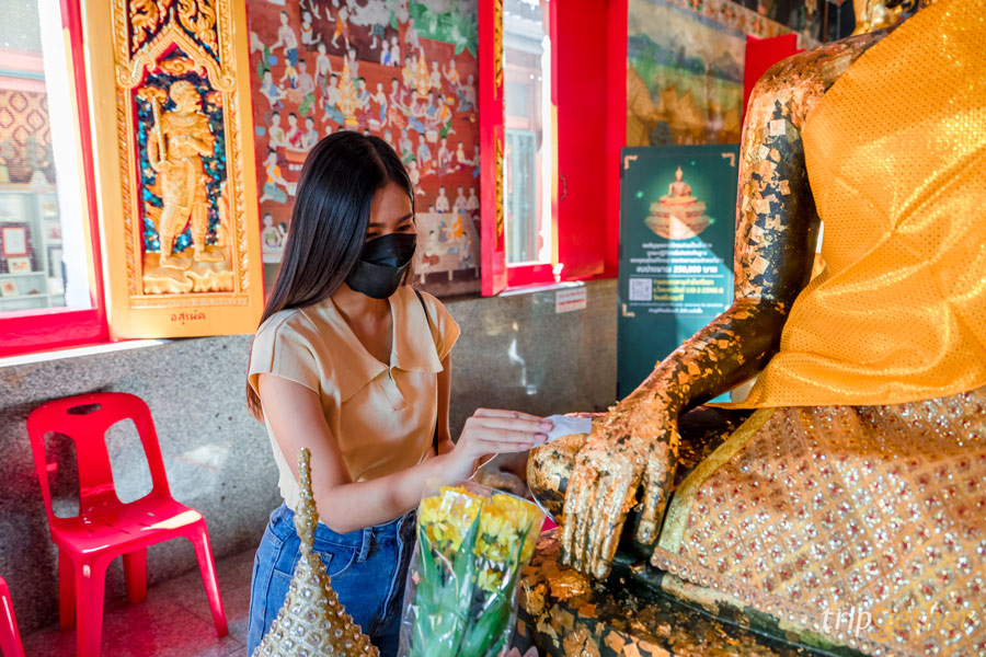 เริ่มจากไหว้หลวงพ่อทันใจ พระพุทธรูปปางมารวิชัยที่มีชื่อเสียงเรื่องบันดาลพรให้กับคนที่ไปกราบไหว้ ซื้อธูป เทียน และดอกไม้ได้จากในวัดเลย