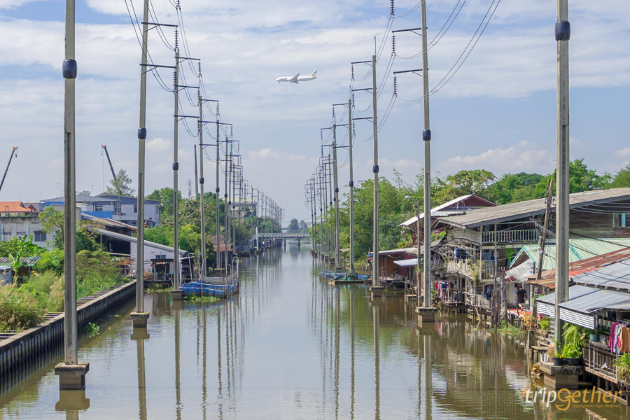 เมื่อเดินทางมาถึงตลาดเก่าหัวตะเข้ ใช้เวลาเดินต่อไปในตลาดไม่ไกลมากสองข้างทางเป็นชุมชนที่มีความวินเทจมากๆ มีแม่ค้าขายของกิน ของใช้ริมทางให้เลือกซื้อมากมายมองเพลินตาสุดๆ ที่นี่คงความเก่าที่สวยคลาสสิกสุดๆ เมื่อมาถึงก็จะเจอสะพานให้เราข้ามคลองเพื่อเข้าไปยังตลาดเก่าหัวตะเข้ที่ล้อมรอบไปด้วยบ้านริมคลองแถมยังมีวิวสวยๆ มีเครื่องบินผ่านให้ได้เก็บภาพบรรยากาศมาให้ชมด้วย