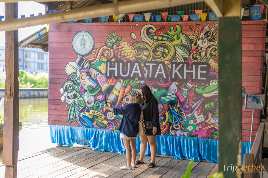 อิ่มท้องกันแล้วก็ไปเดินเล่นกันต่อในตลาดเก่าหัวตะเข้เดินชมบรรยากาศตลอดทางจะเป็นร้านค้า ร้านอาหาร ที่เปิดขายกันมายาวนานเก่าแก่มากๆ เหมือนได้พาตัวเองย้อนอดีตกลับไปในยุค 90 ตลอดทางมีความคลาสสิกทั้งความอาร์ตของบ้านเรือน กำแพง หรือร้านค้า ร้านอาหาร ระหว่างทางเดินภายในตลาดหัวตะเข้ จะมีรูปภาพกราฟิกสวยๆ ให้ได้เดินถ่ายรูปกันไปเพลินๆ ไม่ว่าจะมุมไหนก็วินเทจสุดๆ เอาไปลงโซเชียลกันได้เลย