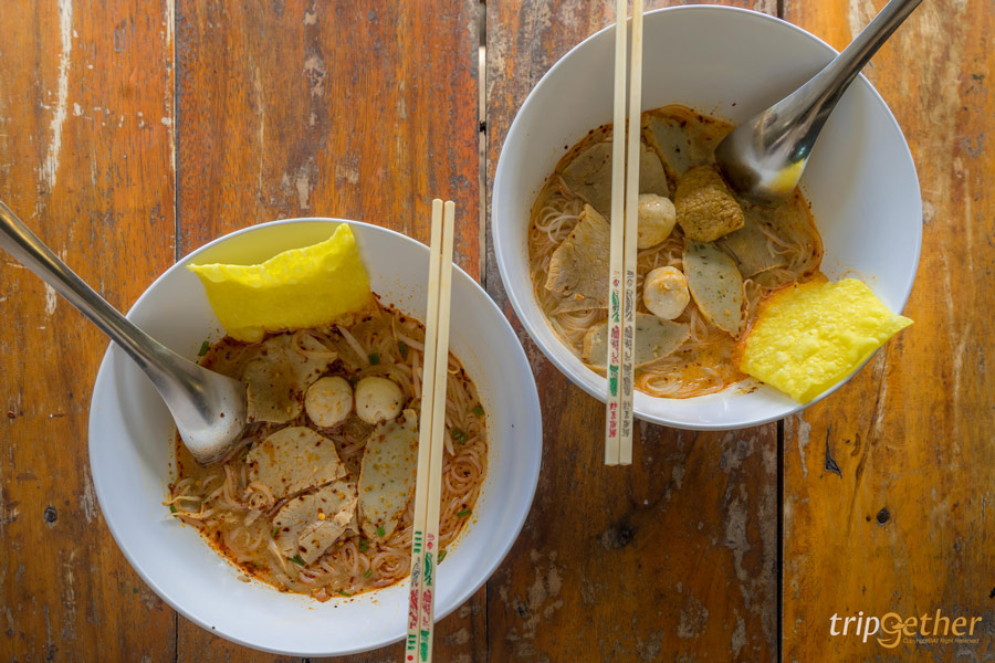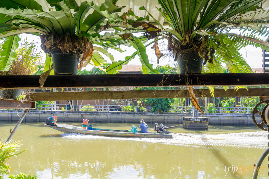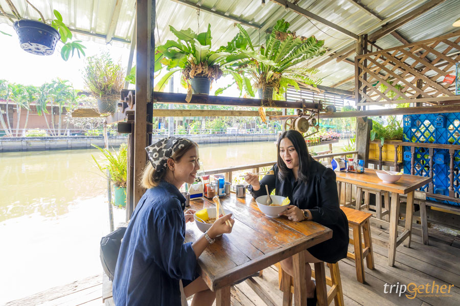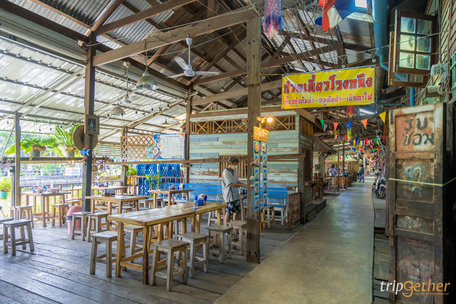 เมื่อมาถึงตอนสายๆ ท้องก็เริ่มร้องมองหาของกินกันสุดๆ เดินเข้าไปเรื่อยๆ จะเจอร้าน ก๋วยเตี๋ยวโรงกลึงกลิ่นหอมลอยมาเรียกน้ำย่อยจนต้องเลี้ยวเข้าร้านไปสั่ง ภายในร้านโปร่งโล่งติดริมคลองมองวิวเพลินมากๆ บรรยากาศดีสุดๆ ร้านก๋วยเตี๋ยวโรงกลึงมีหลายเมนูให้เลือกเยอะและน่ากินมากๆ เมนูที่สั่งมาจะเป็นเส้นเล็กหมูต้มยำ ราคา 45 บาท หอมอร่อยเครื่องแน่นแถมที่ร้านยังมีท่าน้ำให้นั่งชิลล์ๆ รับลมชมบรรยากาศริมคลองที่มีเรือชาวบ้านผ่านไปมาให้ความรู้สึกย้อนยุคสุดวินเทจ ใครที่มาเที่ยวก็มาแวะกันได้เลย