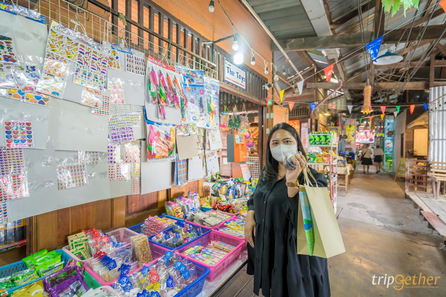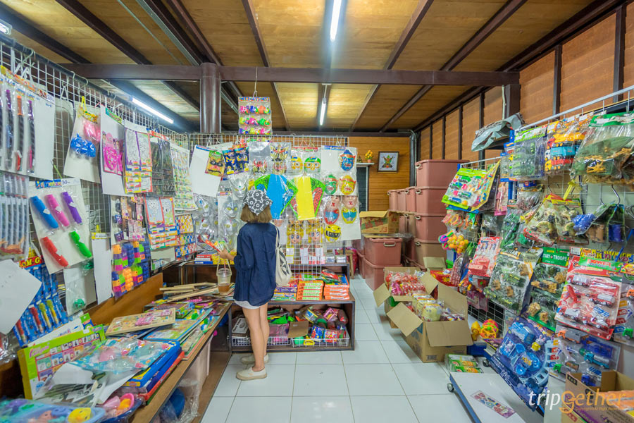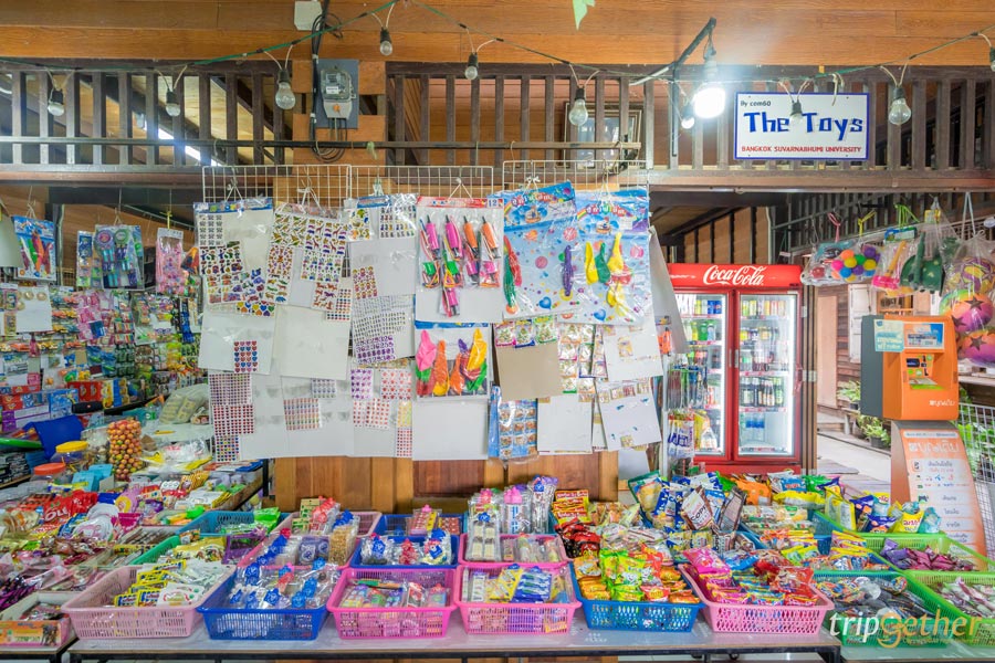 หลังจากที่นั่งปล่อยใจชิลล์ๆ ไปกับงานศิลป์แล้วก็ไปเดินเล่นชมบรรยากาศกันต่อจนไปสะดุดตากับร้านขายของเล่น ขนม วัยเด็กของทุกคนเหมือนได้ย้อนอดีตกลับไปเป็นเด็กอีกครั้ง The Toys ร้านขายของเล่น ขนมเก่าที่หายากหรืออาจจะลืมเลือนไปบ้างแล้ว ร้านนี้มีขายเกือบจะทุกอย่างร้านใหญ่และของขายเยอะ ราคาน่ารักตั้งแต่ 2 บาทขึ้นไป ขนมวัยเด็กที่ไม่ได้กินมานานกลับมากินอีกครั้งก็ยังอร่อยเหมือนเดิม ของเล่นวัยเด็กตื่นตาไปหมด อยากจะเหมายกทั้งร้านเพราะคิดถึงวัยเด็กแบบสุดๆ อะไรที่ไม่ได้เห็นนานแล้วก็จะได้มาเห็นที่ร้านขายของเล่นทีนี่เลยรับรองตื่นเต้นเหมือนกลับไปเป็นเด็กอีกครั้ง