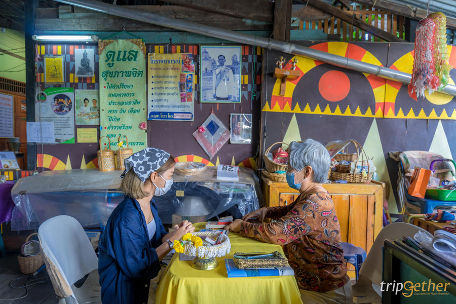 ช้อปกันเพลินๆ เสร็จแล้วก็ไปต่อกันที่ ดูดวง สำหรับสายมูต้องห้ามพลาดเพราะที่ตลาดเก่าหัวตะเข้จะมีคุณป้ารับดูดวงในราคาย่อมเยาโดย 2 คำถาม ราคา 40 บาท จะถามอะไรก็เตรียมคำถามไว้เลย คุณป้าน่ารักเป็นกันเองมากๆ ใครที่มาเที่ยวก็แวะดูดวงกันได้ ถูกใจสายมูแบบสุดๆ