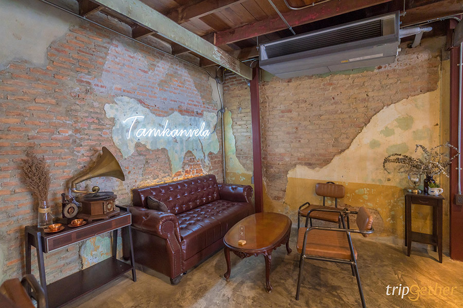 เดินมาเรื่อยๆ เราก็มาถึง ตามกาลเวลา cafe คาเฟ่เล็กๆ น่ารักที่มาพร้อมกับการตกแต่งสไตล์วินเทจ ที่เต็มไปด้วยเสน่ห์มากมาย ทั้งด้านหน้าร้านที่มีต้นไม้ต้นเล็กๆ น่ารักตกแต่งสลับกับกรอบประตูและหน้าต่างที่เป็นไม้ การตกแต่งภายในก็จะเป็นแบบกำแพงอิฐสลับกับเฟอร์นิเจอร์ไม้ ข้าวของเครื่องใช้ในอดีต รวมทั้งนาฬิกาทรายที่เป็นสัญลักษณ์ของทางร้าน