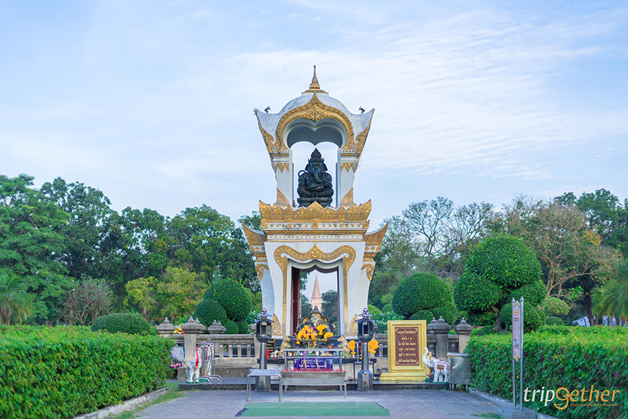 พื้นที่กลางสนามหญ้าของพระราชวังสนามจันทร์เป็นที่ประดิษฐานขององค์พระพิฆเนศ หรือที่เรียกว่า เทวาลัยคเณศร์อีกด้วย ความสวยงามนอกจากประติมากรรมองค์พระพิฆเนศแล้ว จากตำแหน่งของเทวาลัยจะสามารถมองเห็นองค์พระปฐมเจีดย์ที่อยู่ตรงกับศาลอีกด้วย เป็นภาพที่สวยงามอย่างมาก