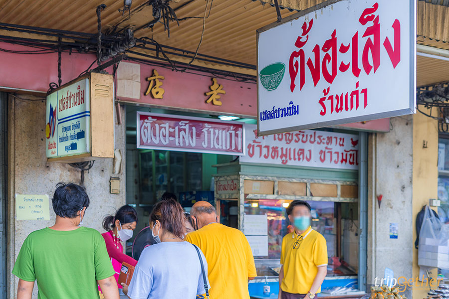 ด้วยความมาถึงช่วงเช้า อาหารเช้าก็ต้องมา ร้านแรกที่เราจะไปกันก็คือ ตั้งฮะเส็ง ร้านข้าวหมูกรอบหมูแดงสุดเก่าแก่ในย่านตลาดล่าง เมืองนครปฐม ตัวร้านเป็นอาคารพานิชย์เก่าที่ยังคงกลิ่นอายความเก่าแก่และวิถีชีวิตของชุมชนตลาดในอดีตได้อย่างครบถ้วน