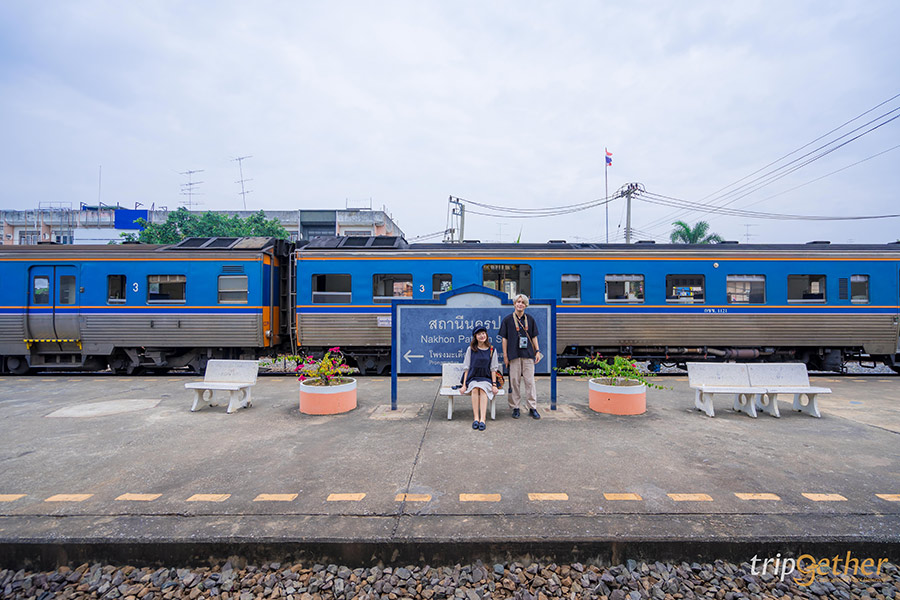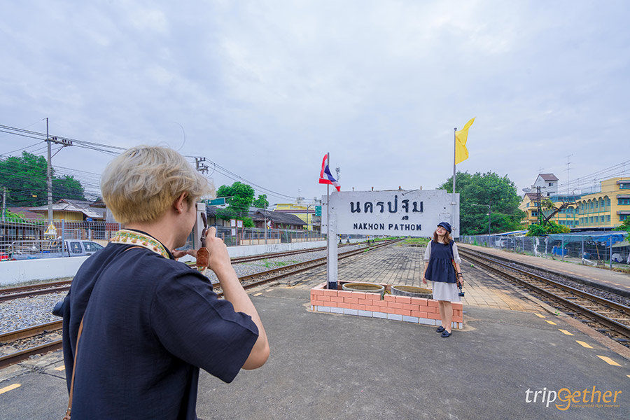 ต้องบอกเลยว่าสถานีรถไฟนครปฐม ตั้งอยู่กลางเมืองเลย แถมอยู่ใกล้กับแหล่งอาหารอย่างตลาดบนและตลาดล่าง รวมทั้งยังสามารถเดินไปเที่ยววัดพระปฐมเจดีย์ได้เลย