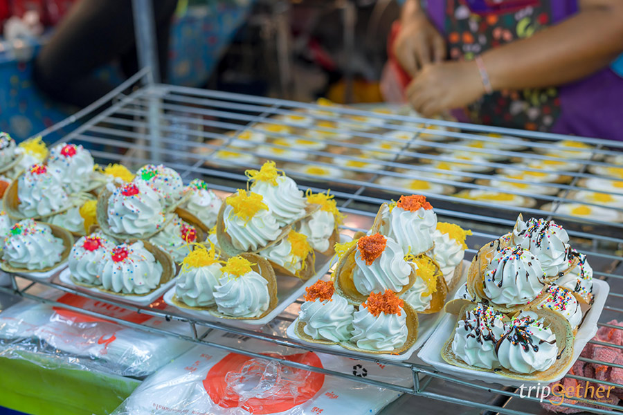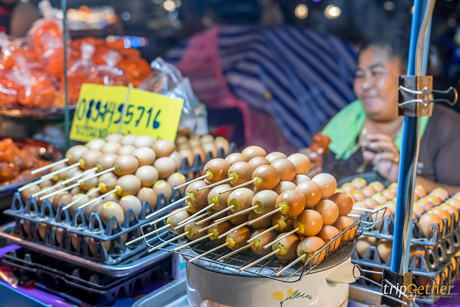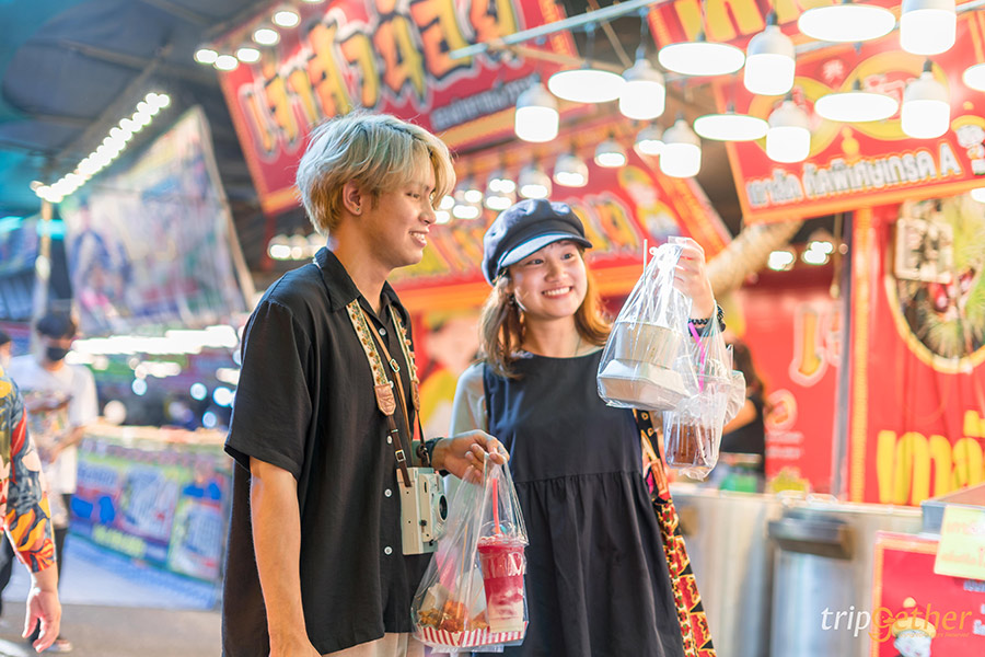 หลังจากเดินชม พักผ่อนกับบรรยากาศช่วงเย็นสุดชิลล์กันแล้ว เราก็เดินกลับไปที่ตลาดโต้รุ่งแถวๆ องค์พระปฐมเจดีย์และหน้าสถานีรถไฟ เพื่อหาอะไรกินรองท้องก่อนกลับ ตอนกลางคืน บรรยากาศของงานองค์พระปฐมเจดีย์สวยมาก ประดับประดาไฟแบบจัดเต็ม