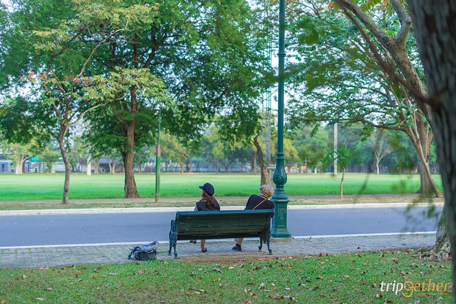 นั่งดื่มน้ำ กินขนมชิลล์ๆ ระหว่างรอพระราชวังสนามจันทร์เปิดให้เข้าชม ตอน 4 โมงเย็น
