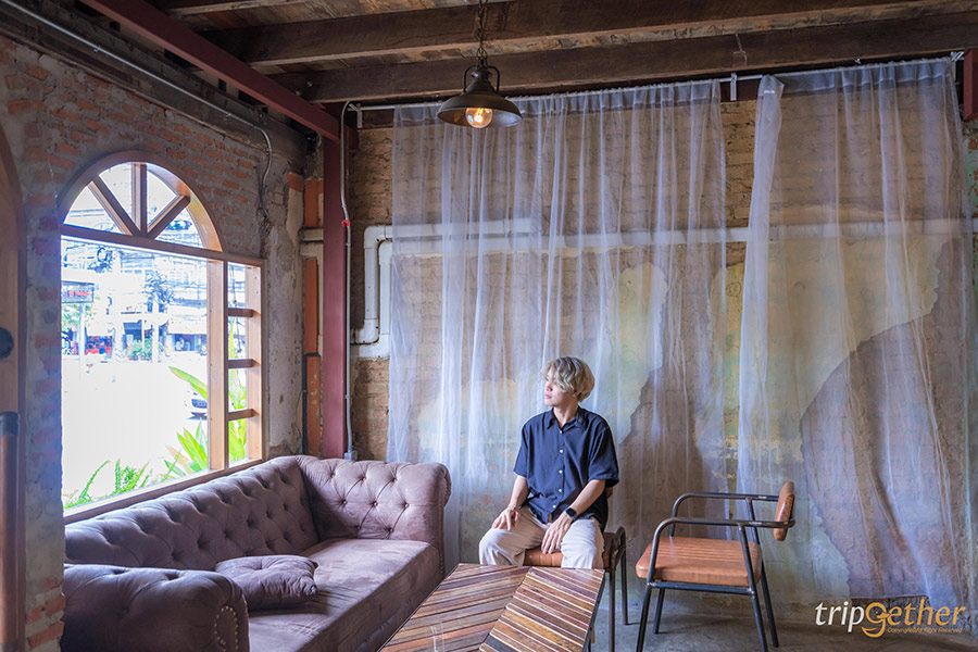 มุมถ่ายรูปในร้านก็มีให้เลือกเพียบ ไม่ว่าจะเป็นมุมที่นั่งริมหน้าต่าง ที่นั่งโซฟาที่มีผนังอิฐสีส้มเป็นฉากหลัง บอกเลยว่าเรียบหรูสุดๆ (แถมยังเข้ากับชุดที่เราใส่ไปวันนี้ด้วยนะ อิอิ)