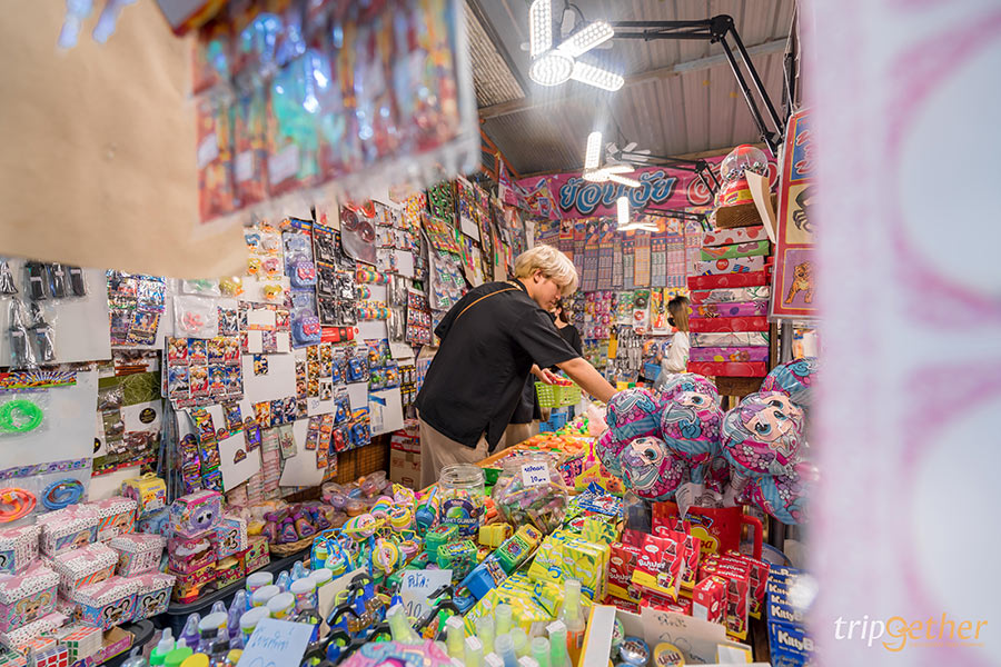หลังจากเติมพลังความอร่อยกันแล้ว เราก็เดินเที่ยวดูบรรยากาศอันสุดคึกคักของตลาดกันต่อ รอบๆ ตลาดมีของขายหลากอย่างมาก ทั้งขนมกินเล่น อาหาร หรือจะเป็นข้าวของเครื่องใช้