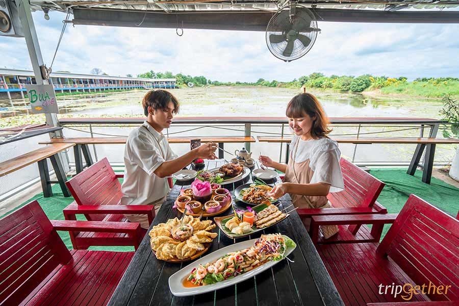 ที่นี่เป็นสถานที่ท่องเที่ยวที่เต็มไปด้วยบรรยากาศของทุ่งดอกบัวที่บานทั่วทุ่งสีชมพูสวยมาก แถมมีในส่วนของตลาดริมน้ำสุดความคลาสสิกเน้นที่ความเป็นไทย มีมุมถ่ายรูปสวยๆ เหมาะกับการเป็ยจุดเติมพลังในมื้อเช้าเป็นที่สุด อาหารเครื่องดื่ม ราคาก็ไม่แพง แนะนำเมนูเด็ดใครมาแล้วต้องสั่ง คือเมี่ยงคำกลีบบัว อร่อยครบเครื่อง ฉ่ำสุดๆ ส่วนเครื่องดื่มก็ต้อง ชาเกสรดอกบัว กลิ่นหอมอ่อนๆ รสชาติเป็นเอกลักษณ์