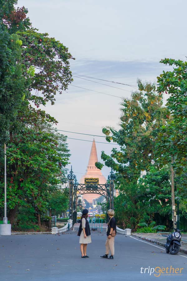 เดินชมบรรยากาศในพื้นที่ของพระปฐมเจดีย์แล้ว เราก็เดินออกจากองค์พระปฐมเจดีย์ที่ประตูทางทิศตะวันตก มาเล่นถ่ายรูป เที่ยวกันต่อด้วยการเดินชมบรรยากาศเมืองบางส่วนตามถนนราชดำเนิน