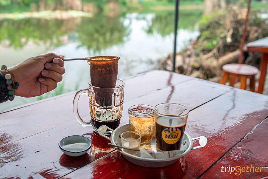 จิบกาแฟโบราณยามเช้ากับเซ็ตสุดน่ารัก ซึ่งทางร้านจะจัดมาให้เราเติมน้ำเติมนมเองตามใจชอบได้เลย