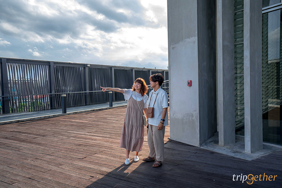 สำหรับหอภาพยนตร์มี 6 ชั้นก็จริง แต่ชั้น 6 จะเป็นชั้นโรงภาพยนตร์ศาลาศีนิมา ซึ่งจะมีฉายหนังเป็นรอบๆ ถ้าใครไม่ได้ตั้งใจมาดูหนังโดยเฉพาะก็แนะนำให้เริ่มเดินตั้งแต่ชั้น 5 ไล่ลงมาจนถึงชั้น 1 และทริปนี้เราก็เริ่มกันที่ชั้น 5 ซึ่งเป็นจุดชมวิว ชั้นนี้เป็นโถ่งกว้างๆ ไฮไลท์อยู่ที่ระเบียงทางเดินด้านนอกที่สามารถเดินได้รอบอาคารและมีจุดชมวิวที่สามารถเห็นวิวเมืองได้แบบกว้างๆ บอกเลยว่าบรรยากาศชิลล์สุดๆ