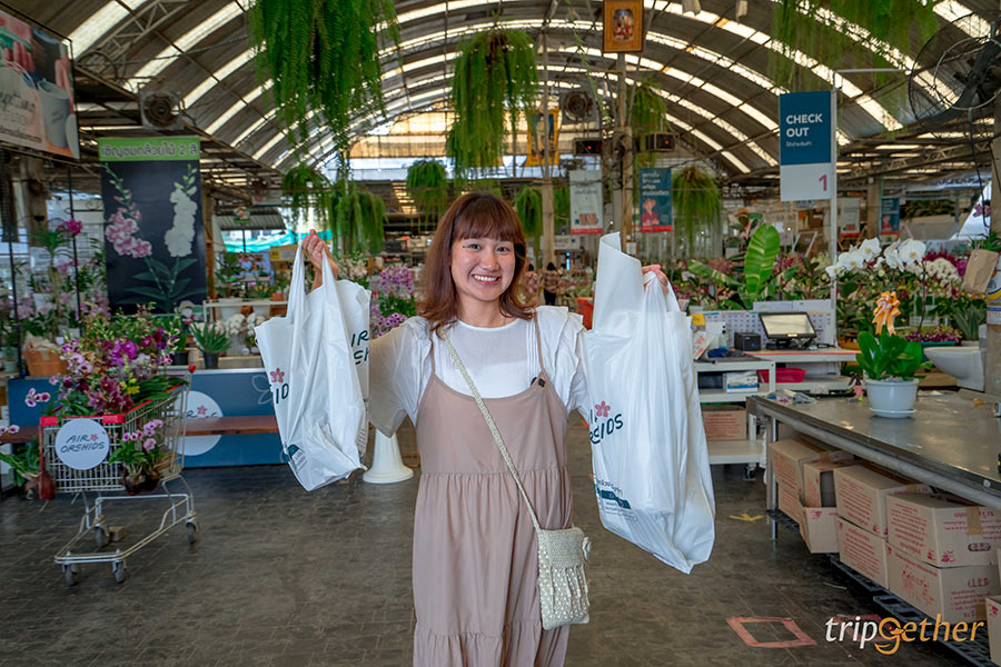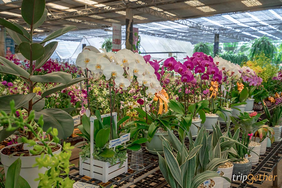 เพียงเดินเข้ามาในร้านก็คือตื่นตาตื่นใจมาก มองไปทางไหนก็เจอแต่สีเขียว เรียกได้ว่าเป็นสวรรค์ของคนรักต้นไม้เลย และแน่นอนเรามาถึงก็รีบคว้ารถเข็นเตรียมช้อปกันเต็มที่เลย ที่นี่มีต้นไม้ ดอกไม้ ไม้ประดับให้เลือกหลากหลายมาก ไม่ว่าจะเป็นกล้วยไม้ แคคตัส ต้นยางอินเดีย ริบบิ้นชาลีด่าง ต้นไทรใบสัก นอกจากนี้ยังมีอุปกรณ์สวนอีกมากมาย ทั้งปุ๋ย กระถาง เซรามิก ลังไม้