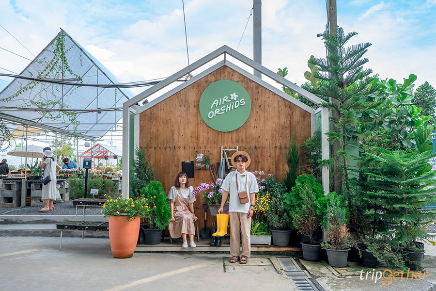 มาเที่ยวครั้งนี้เรียกได้ว่าเอาใจคนรักต้นไม้สุดๆ เพราะเราจะพาทุกคนมาช้อปปิ้งต้นไม้กันนน ขับรถออกจากตลาดน้ำทุ่งบัวแดงประมาณครึ่งชั่วโมงก็มาถึง The Flask Cafe by Air Orchids เป็นร้านขายต้นไม้ที่ครบวงจร ภายในร้านมีพื้นที่กว่า 30 ไร่ แบ่งออกเป็น โซนซุปเปอร์มาร์เก็ต สำหรับช้อปปิ้งเลือกซื้อต้นไม้ โซนคาเฟ่ สำหรับนั่งพักผ่อนหาอะไรกินชิลล์ๆ และโซน Air Orchids Backyard สำหรับถ่ายรูปเช็คอินน่ารักๆ