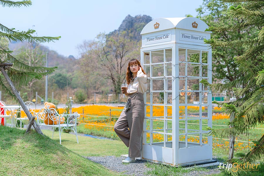 มีวันหยุดแค่เสาร์-อาทิตย์ก็สามารถเที่ยวธรรมชาติกรีนๆ แถมสวยเทียบต่างประเทศ คราวนี้เราจะขับรถกันไปที่ จ.ลพบุรี และพูดถึงลพบุรีเชื่อว่าภาพในใจหลายคนก็คงเป็นวัด ทุ่งทานตะวัน และลิงมากมาย แต่วันนี้ขอเปลี่ยนมู้ดหน่อย อยากจะไปเที่ยวชิคๆ หาที่เที่ยวถ่ายรูปสวยๆ ไว้ทำคอนเทนต์กัน เอาเป็นว่ามาเริ่มที่แรกกันเลยดีกว่า ขับรถจากกรุงเทพฯ เกือบ 2 ชั่วโมงก็ขอแวะซื้อกาแฟสักแก้ว และสาย cafe hopping อย่างเราก็ต้องเลือกร้านสวยไว้ทำคอนเทนต์ ซึ่งร้านที่เรามาในวันนี้ก็คือ Flower House Cafe & Bistro เป็นคาเฟ่สวนดอกไม้ ตั้งอยู่ตรงข้ามวัดถ้ำมงคลนิมิตร ตอนที่เรามาถึงเป็นช่วงเที่ยงๆ แดดอาจจะแรงนิดหนึ่ง แต่บอกเลยว่าดอกไม้ยังสวยสู้แดดสุดๆ