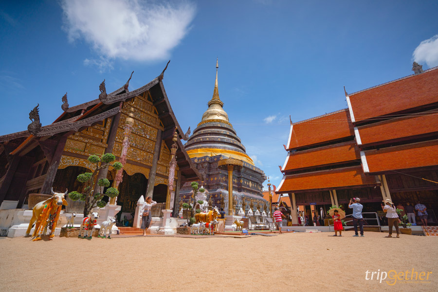 ขับรถจากวัดพระธาตุดอยพระฌานไปต่ออีกประมาณครึ่งชั่วโมง วัดพระธาตุลำปางหลวง ที่เรียกได้ว่าเป็นวัดประจำเมืองลำปาง เพราะอยู่คู่กับจังหวัดลำปางมายาวนาน อยู่มาตั้งแต่สมัยพระนางจามเทวีเลยทีเดียว แต่ยังคงเสน่ห์ความสวยงามไว้ได้เป็นอย่างดีนับว่าเป็นวัดวิหารไม้ที่สมบูรณ์ที่สุดอีกแห่งหนึ่งของไทยอีกด้วย และยังเป็นวัดประจำปีฉลูหรือปีวัว