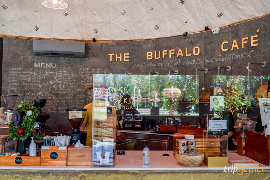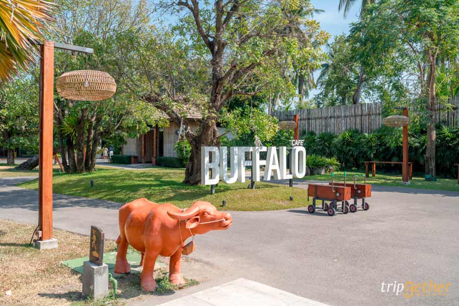 แวะเติมพลังกันสักหน่อยที่ เดอะ บัฟฟาโล่ อัมพวา (The Buffalo Amphawa) คาเฟ่ที่ไม่ไกลจากวัดนางตะเคียน บรรยากาศดี ติดริมน้ำแม่กลอง ที่นี่มีไฮไลท์คือคอกควายสุดน่ารัก ซึ่งเราสามารถให้อาหาร ถ่ายรูป แวะทักทายน้องควายกันได้เลยแอบกระซิบคาเฟ่มีพื้นที่กว้างขวางสามารถเดินชิลล์ชมวิวได้แบบสบายๆ