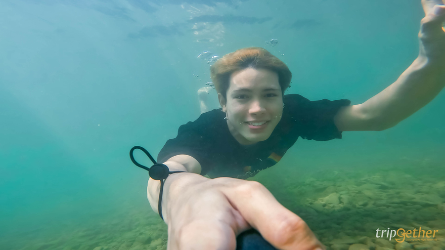 นี่เป็นไง แจกรอยยิ้มใต้น้ำไปเลย ปิ้วๆ อย่างที่บอกไปว่าน้ำใสมาก ลืมตาในน้ำได้แบบสบายๆ