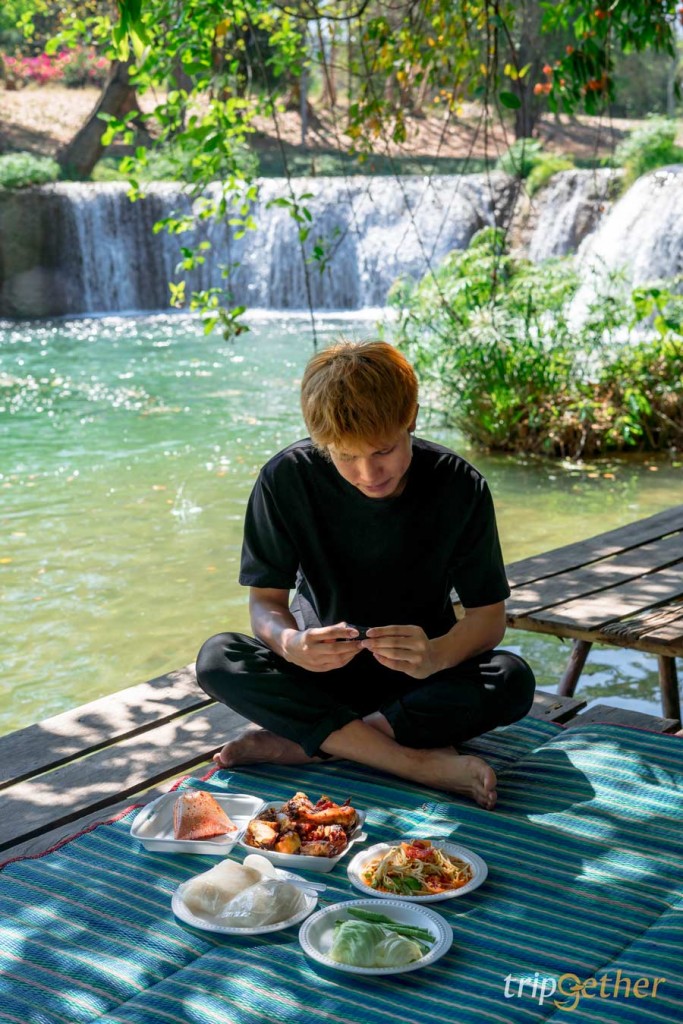 ริมน้ำตกมีแคร่ให้นั่งแบบชิลล์ๆ เต็มไปหมดเลย เลือกมุมที่ชอบได้ตามใจเลยด้วย มื้อกลางวันเราฝากท้องกับร้านอาหารที่นี่กัน ซึ่งแต่ละร้านเป็นร้านของคนในชุมชนที่บอกเลยว่าทั้งอร่อยและบริการดีมาก เพราะที่นี่เค้าเสิร์ฟอาหารให้ถึงแคร่