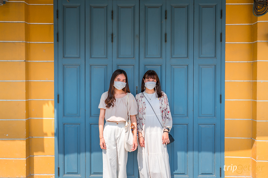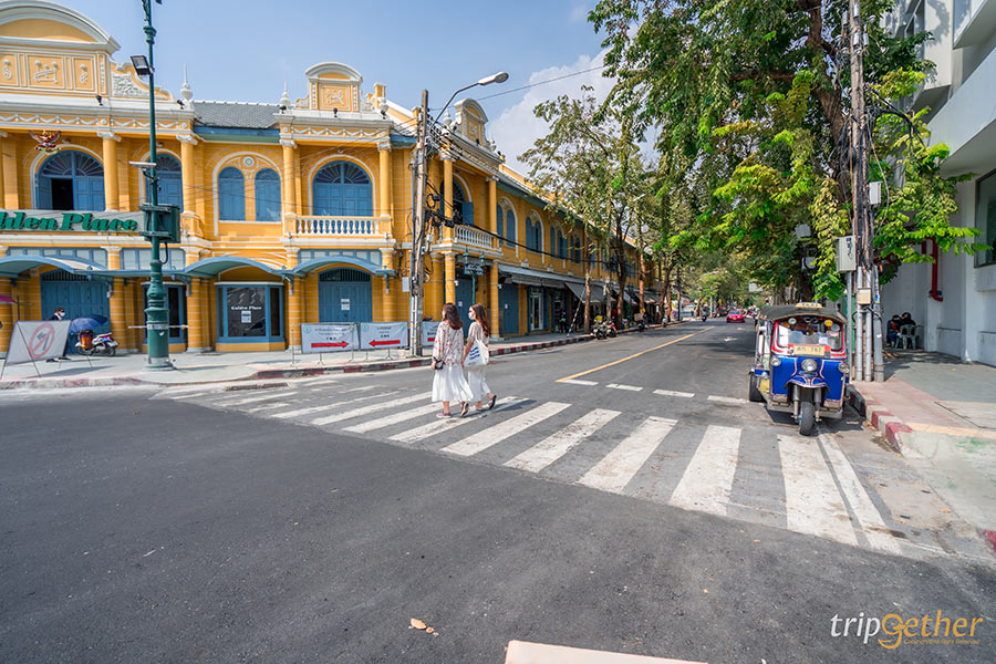 ตัวอาคารแถบนี้เป็นสถาปัตยกรรมแบบนีโอคลาสสิก โดดเด่นด้วยตัวอาหารสีเหลืองเข้มตัดกับประตูและหน้าต่างสีฟ้า ถ่ายรูปออกมาดูสดใส น่ารัก และฮิปสุดๆ