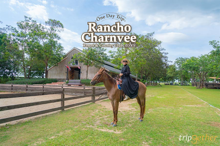 เริ่มต้นทริปจากกรุงเทพฯ ปักหมุดมาที่ Rancho Charnvee Resort & Country Club (แรนโช ชาญวีร์ รีสอร์ต แอนด์ คันทรี คลับ) สถานที่ที่ตอบโจทย์ทุกการพักผ่อน พร้อมกิจกรรมสนุกๆ ให้ทำมากมาย ภายในมีพื้นที่กว่า 700 ไร่ โอบล้อมอยู่ท่ามกลางธรรมชาติ มีทั้งที่พักสวยสไตล์ยูโรเปียนคันทรี ร้านคาเฟ่บรรยากาศดี ร้านอาหารสไตล์อิตาเลียน หรือจะนั่งชิลล์ๆ ดูหนังกลางแจ้ง รวมถึงใครที่มาก็สามารถติดต่อทำกิจกรรมต่างๆ ไม่ว่าจะเป็นขี่ม้า ตีกอล์ฟ ขับรถคลาสสิก ขับรถ ATV มีครบจบทุกสิ่งขนาดนี้ สายกิจกรรมอย่างเราก็ไม่รอช้าจัดทริปมาที่นี่เลย