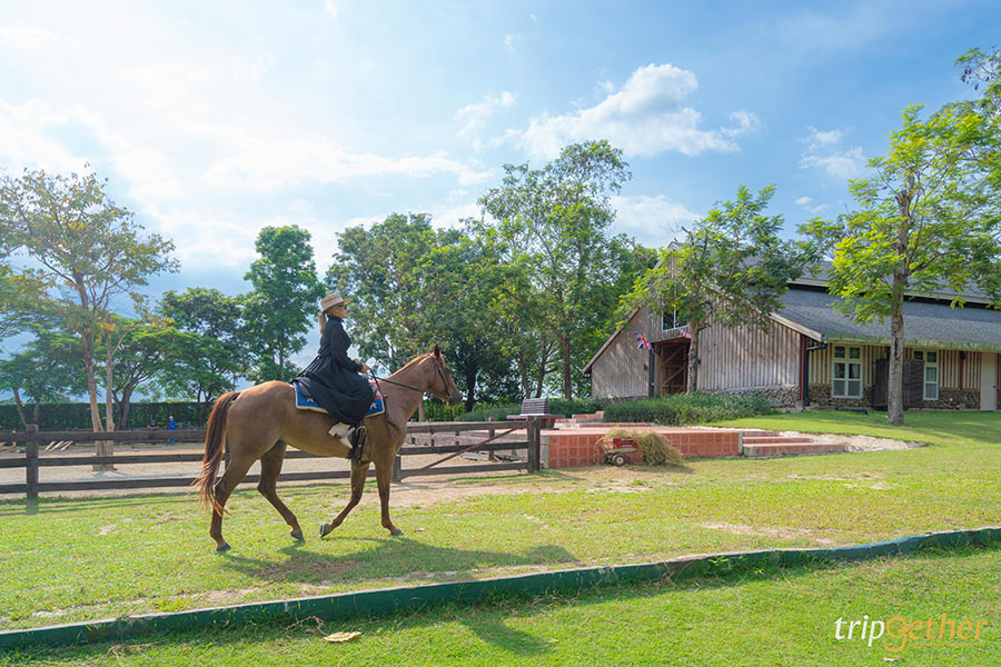 มาต่อที่ไฮไลท์หลักที่ใครมา Rancho Charnvee Resort & Country Club ก็ต้องลองเปิดประสบการณ์สนุกๆ อย่าง กิจกรรมขี่ม้า โดยกิจกรรมนี้มีหลายโปรแกรมให้เลือก ไม่ว่าจะเป็นขี่ม้าแบบมีคนจูงเดิน, ขี่ม้าเทรล, เรียนขี่ม้า หรือใครอยากเรียนจริงจังแบบเป็นคอร์สก็มีเหมือนกัน สำหรับเราไม่มีประสบการณ์และไม่เคยขี่ม้ามาก่อนก็เลือกขี่ม้าแบบมีคนจูง ไม่ได้น่ากลัวเลย กลับรู้สึกตื่นเต้นด้วยซ้ำ และมีผู้เชี่ยวชาญคอยดูแลอยู่ใกล้ๆ ตลอด มั่นใจได้ตลอดการขี่