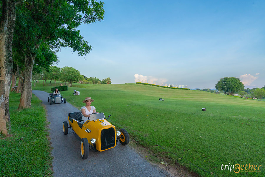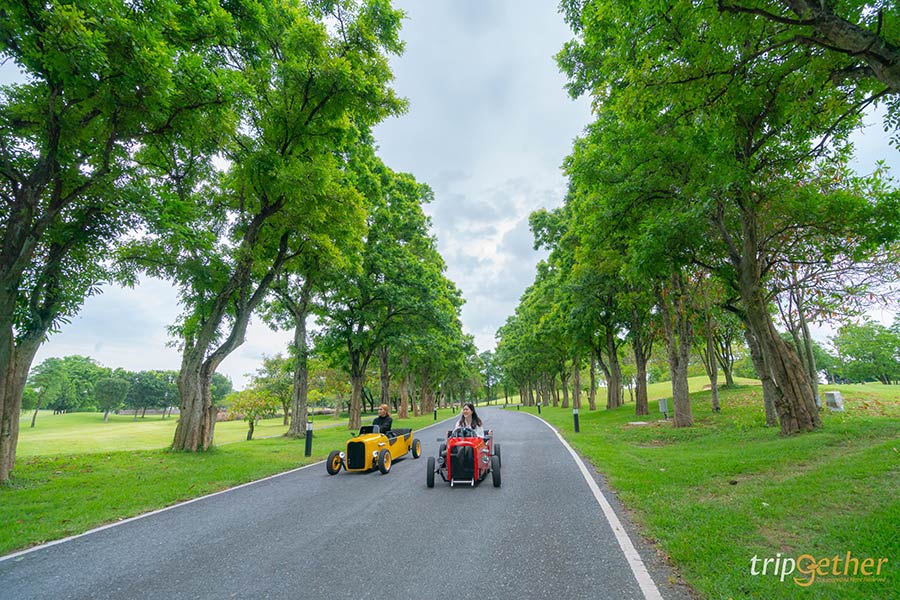 สำหรับตอนนี้ก็คืออิ่มมาก เรามาเริ่มกิจกรรมเบาๆ อย่าง การขับรถคลาสสิก ชมวิวรอบๆ Rancho Charnvee Resort & Country Club ขับรถชิลล์ๆ เสพบรรยากาศความกรีนกันแบบฟินๆ อีกทั้งรถยังขับง่าย ต่อให้ขับรถไม่เป็นก็ไม่ต้องกลัว แถมรถยังน่ารักมาก ใครอยากถ่ายรูปทำคอนเทนต์ก็ต้องจัดสักหนึ่ง นอกจากนี้ยังมีรถสกู๊ตเตอร์ไฟฟ้าสามล้อ รถจักรยาน และรถสกู๊ตเตอร์ไฟฟ้าพ่วงข้างสำหรับเด็ก