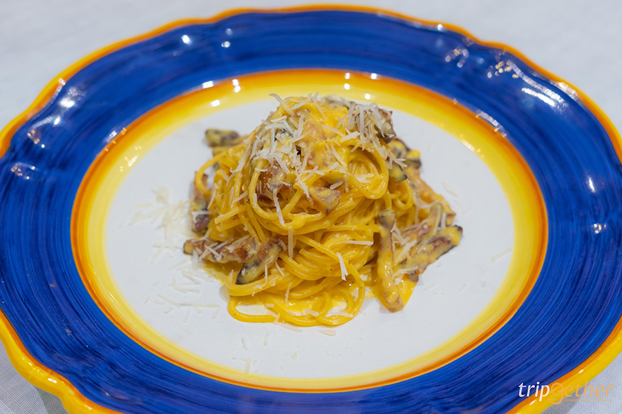 ส่วนใครสายพาสต้าก็แนะนำเมนู Carbonara Romana รสเข้มข้น กลมกล่อม มีความเค็มจากชีสหน่อยๆ อีกทั้งความพิเศษของเมนูนี้ คือ ทางร้านเลือกใช้ส่วนแก้มหมูแทนเบคอน