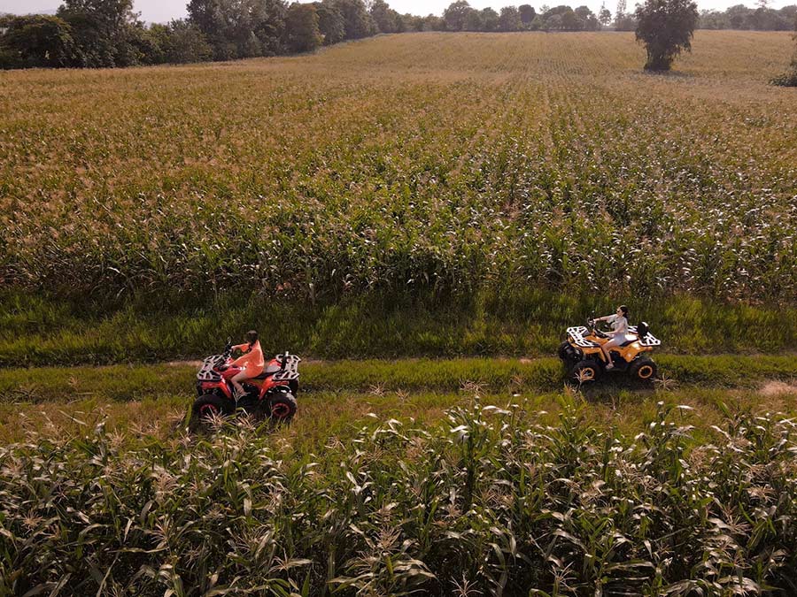 ขับรถเล่น วอร์มเครื่องเบาๆ เสร็จแล้ว ใครสายแอดเวนเจอร์ก็ต้องมาต่อ ขับ ATV ซึ่งก็จะยากกว่าการขับรถคลาสสิกเล็กน้อย เส้นทางท้าทายมากขึ้น แต่รับรองว่าได้สัมผัสธรรมชาติสวยๆ ไม่แพ้กัน และถ้าได้มาขับรถ ATV จะได้สำรวจวิวทุ่งข้าวโพดสวยๆ บอกเลยว่าตรงนี้พิกัดถ่ายรูปทำคอนเทนต์ปังสุดๆ