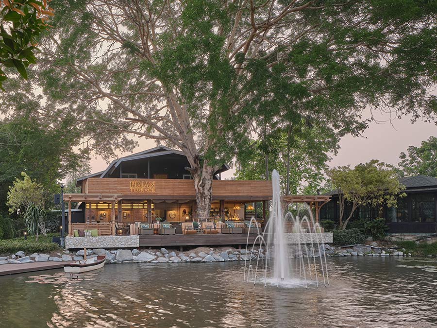 มาปิดทริปด้วยการนั่งชิลล์ จิบเครื่องดื่มเบาๆ ใน Piman Terrace อยู่ใกล้ๆ กับร้านอาหาร ตัวร้านเป็นบาร์หรูท่ามกลางของต้นไม้ที่ให้ร่มเงาและสระน้ำขนาดใหญ่ เหมาะกับการมานั่งชาร์จพลังจากความเหนื่อยล้า รวมถึงมีไฮไลท์ก็คือ การดูหนังกลางแปลง หรือ Outdoor Theatre ซึ่งหนังจะมีฉายทุกวันวันละ 1 เรื่อง เริ่มฉายตั้งแต่เวลา 18.45 – 22.00 น. ส่วนตารางหนังก็จะมีเปลี่ยนไปในแต่ละวัน บอกเลยว่าได้มานั่งดูหนังตอนเย็นๆ ใกล้ชิดธรรมชาติแบบนี้แบบนี้เป็นอีกกิจกรรมที่ผ่อนคลายและจบทริปได้อย่างน่าประทับใจ
